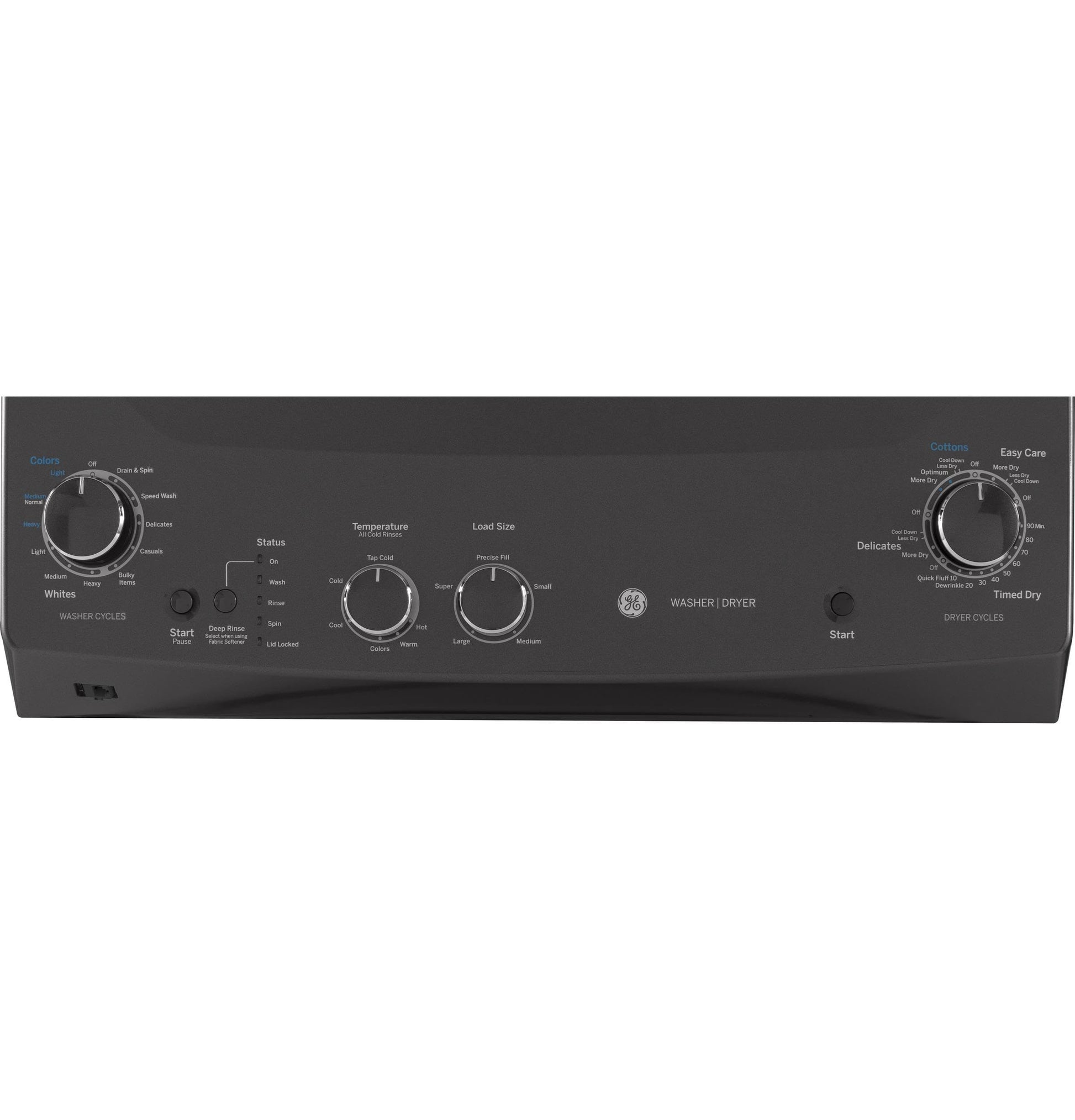 Details: GE Appliances is your home for the best kitchen appliances, home products, parts and accessories, and support. Rotary- electromechanical controls (dryer) 11 wash cycles 6 wash / rinse temperatures Dimensions: 75 7/8 H x 26 3/4 W x 30 7/8 D Rotary- electromechanical controls (dryer) Allow fast, easy cycle selection 11 wash cycles Cycles are designed to specifically handle various fabrics and soils 6 wash / rinse temperatures Select the right temperature for ideal wash results 1 wash / spin speed combination Speeds are matched to fabric type for great clothes care Auto-load sensing with 4 water levels Washer will automatically measure the load size and add just the right amount of water, or choose your own Rotary-electronic controls (washer) Simplify cycle selection Quick Specs Installation Instructions Use and Care Manual Energy Guide CAD Files 3D CAD Files 2D Plan CAD Files 2D Elevation