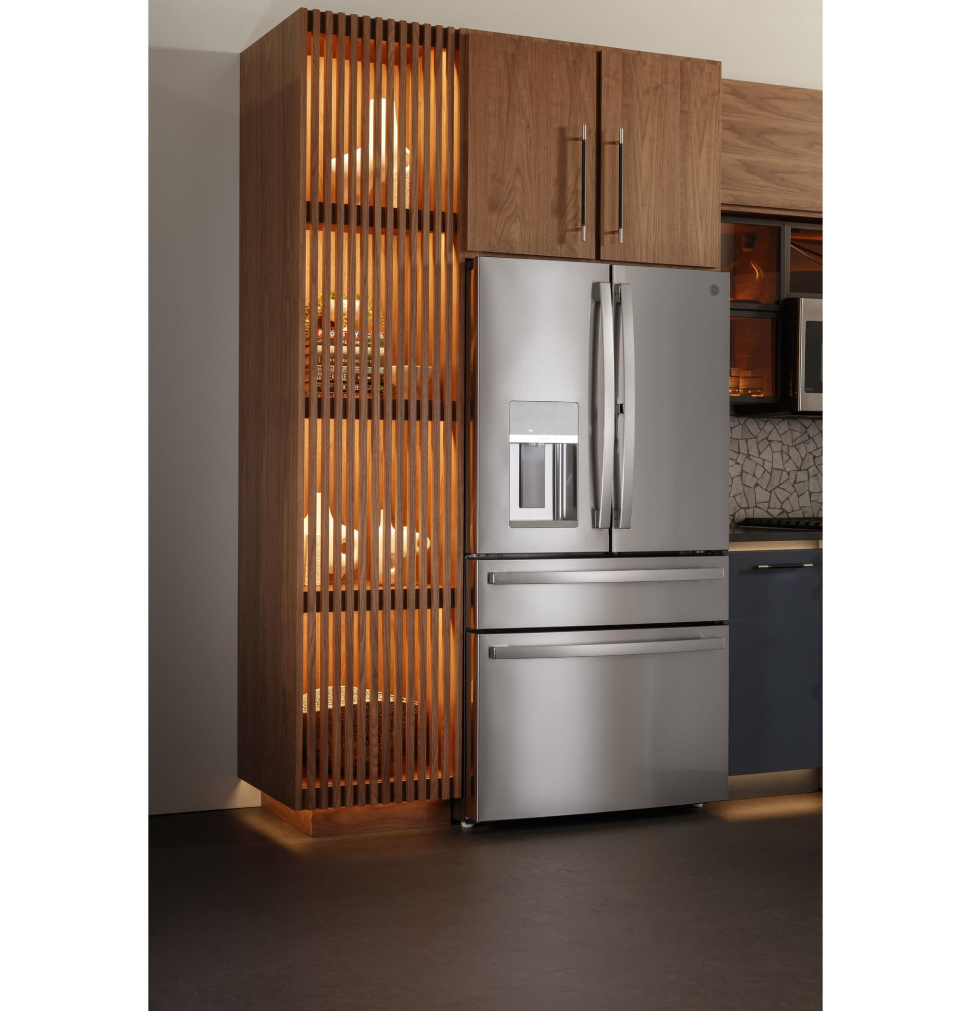 Details: This 36 4-door french door refrigerator by GE Profile has 27.6 cu. ft. total capacity and features LED light tower. built-in Wi-Fi. TwinChill evaporators. and is Energy Star Certified.