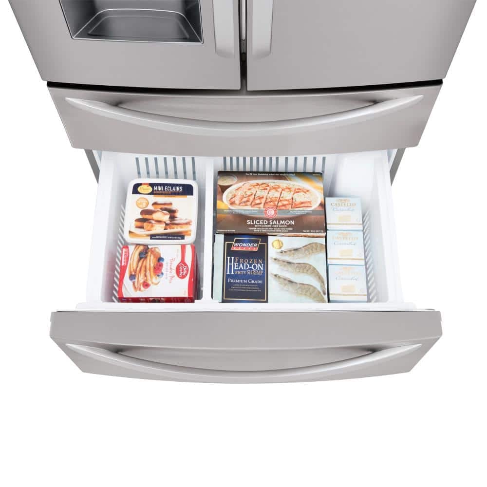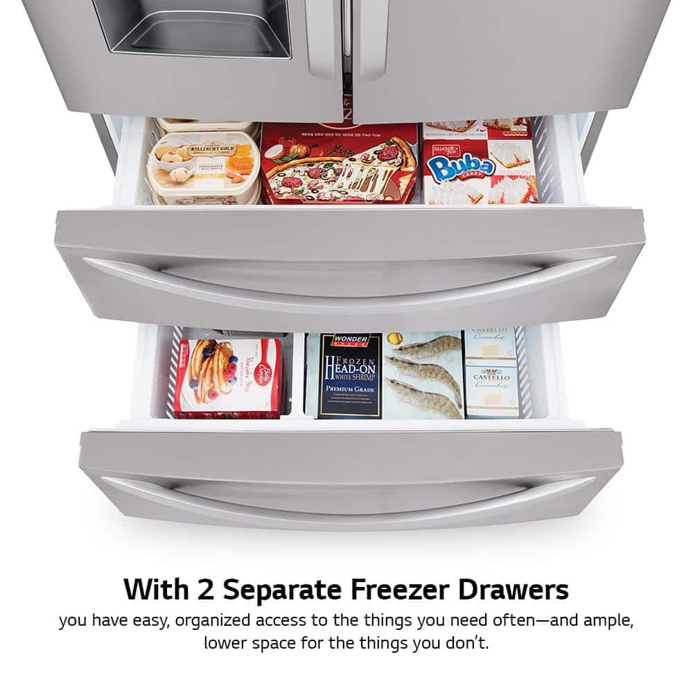 Details: - 27.8 cu.ft. - Fingerprint and Smudge Resistant Finish - LG SmartThinQ Technology - Door Cooling+ - Double Freezer Drawers - Slim SpacePlus Ice System - ENERGY STAR Qualified