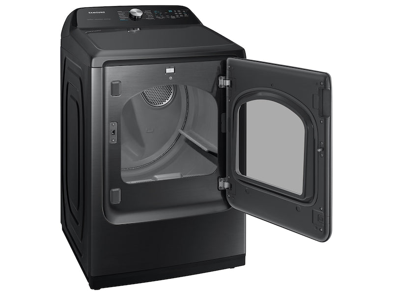 The Samsung 7.4 cu. ft. Smart Vented Electric Dryer with Steam Sanitize+ offers a large capacity for fewer loads and less time in the laundry room. The Steam Sanitize+ cycle removes 99.9% of germs and bacteria, over 95% of pollen, and 100% of dust mites. This dryer features Smart Care, which allows you to troubleshoot from your smartphone, and Vibration Reduction Technology+ for quiet operation.