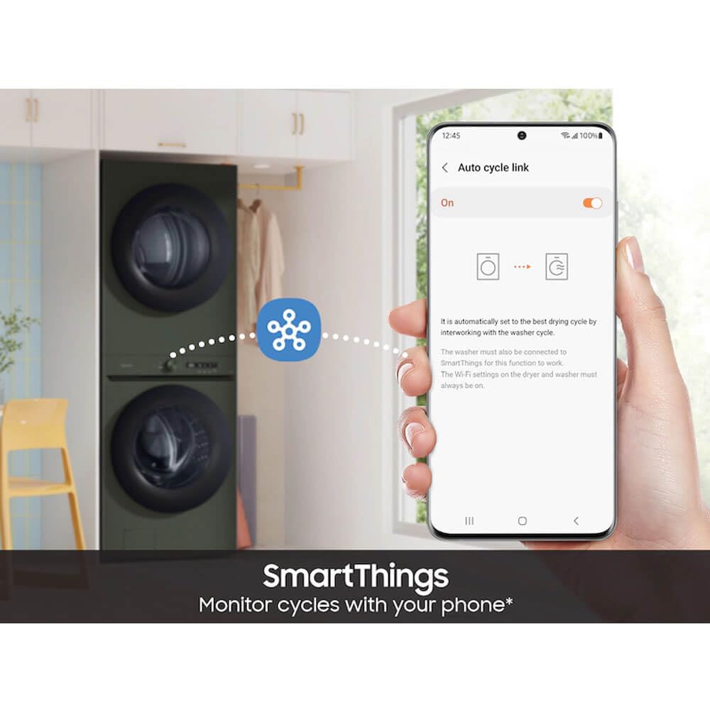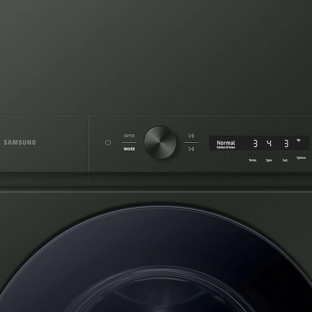 Details: - AI Laundry Hub with Easy Reach Control Panel - Space Saving Solution in a Single Machine - Ultra Capacity Washer and Dryer - AI OptiWash and AI Optimal Dry - Stylish Bespoke Satin Green Color - Automatic Detergent Dispensing